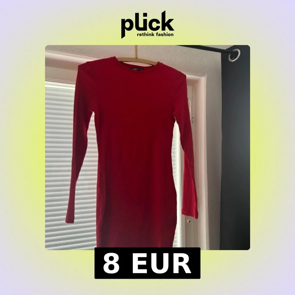 Snygg röd ribbad klänning från FB Sister i storlek XS. Klänningen har en tight passform och långa ärmar, perfekt för en stilren look. Den är enkel men ändå elegant, vilket gör den till ett mångsidigt plagg i garderoben.