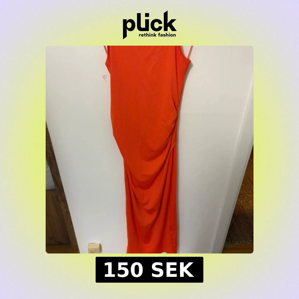 Säljer en orange långklänning från SHEIN med smala axelband och snygg knutdetalj i ryggen. Klänningen har en figurnära passform och är tillverkad i ett mjukt, stretchigt material. Perfekt för dig som vill sticka ut med färg!
