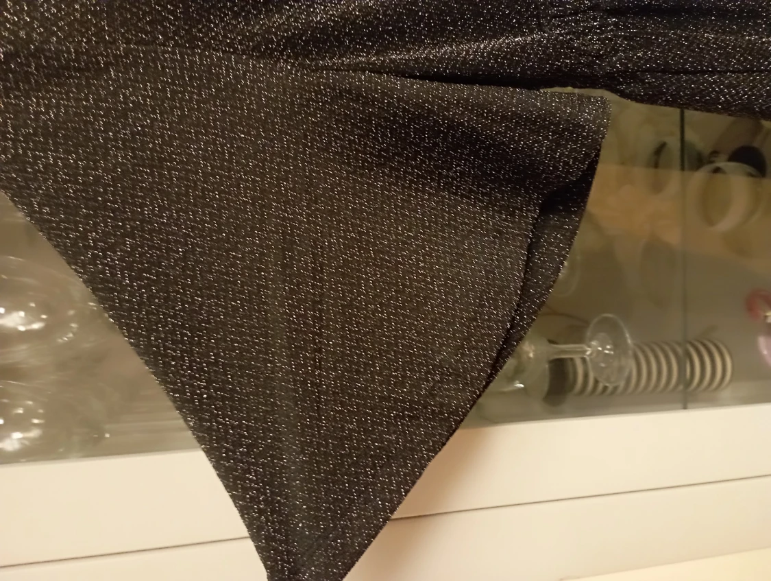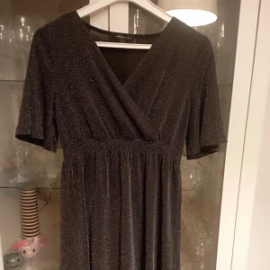 Jätte fin klänning, passar bra till halloween el jul/nyår. Denna är endast använd en gång Lite Vidar ärm som lägger sig fint Har ett mjukt innerfoder som gör att klänningen är extra skön att bära . Inget glitter som lossnar utan det är i materialet