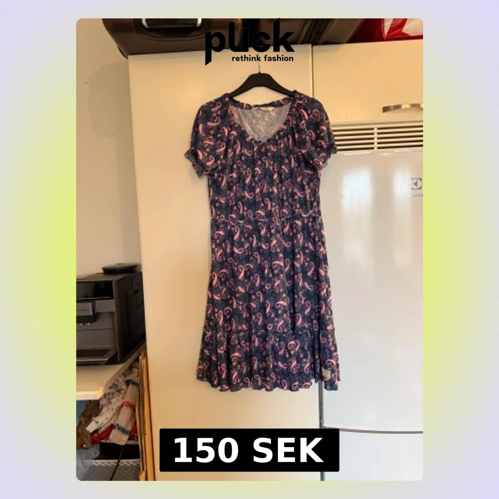 Supersöt blå kortklänning från Odd Molly med paisleymönster i rosa och lila toner. Klänningen har korta ärmar, volangkant nertill och en avslappnad passform. Perfekt för dig som gillar boho-vibbar och vill ha något bekvämt men ändå snyggt. Från märket Odd Molly. Storlek 1 som enligt deras storleksguide motsvarar en S. Men passar mer en M. Rymlig. Mycket fint skick, jag hittar inga synliga anmärkningar eller defekter.