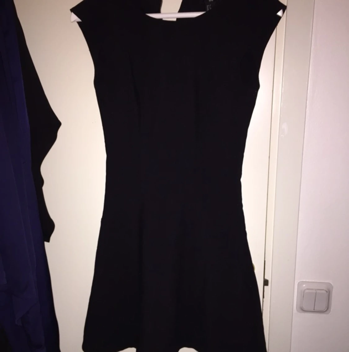 Svart klänning, Den slutar strax över knäna, Lite volang nertill Figursydd.