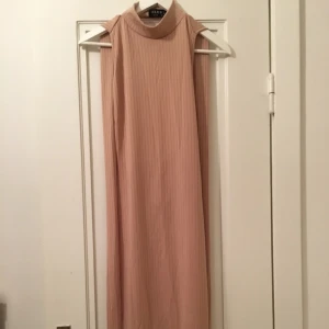 Fin festklänning med bar rygg, bandet går att knyta på många olika sätt. Liten slit på sidan. Beige. Oanvänd