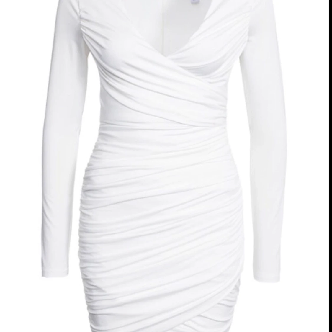 Vit kortklänning från Showpo - Säljer min studentklänning från showpo! Supersnygg vit kortklänning med puffiga kortärmar och djup v-ringning. Nypris var 1000 kronor men säljer den för 800 😍😍☺️