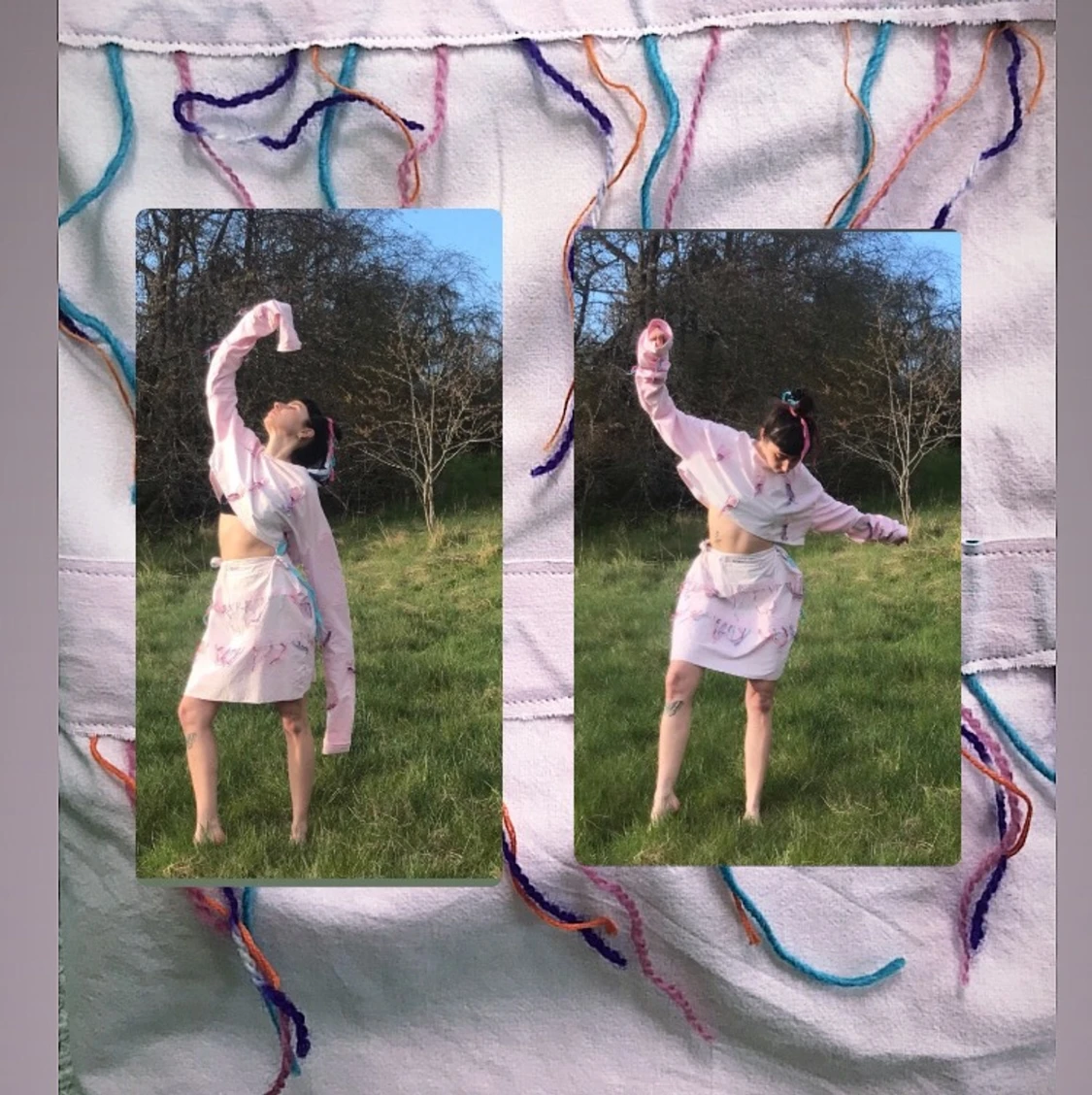 Har designat allt själv, från återbruk gammalt lakan liksom! Sytt etc. Designar kläder i det här paketet ingår det ni ser på bilden tröjan och kjolen helt enkelt🌈🙏🏿🦋 #pepp.kollektivet