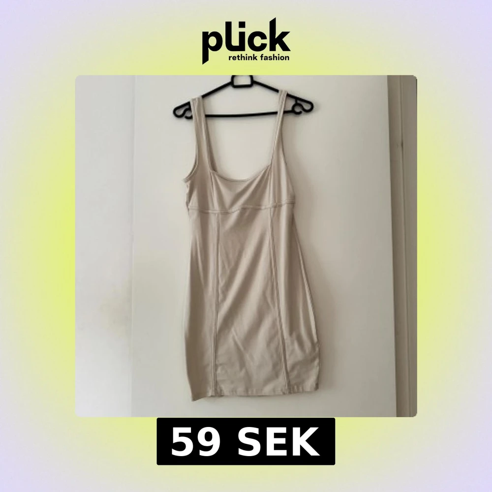 En stilren beige kortklänning från ASOS med breda axelband och figurnära passform. Klänningen har en enkel design utan mönster och är tillverkad i ett mjukt, stretchigt material som sitter snyggt på kroppen. Perfekt för dig som gillar minimalistisk stil.