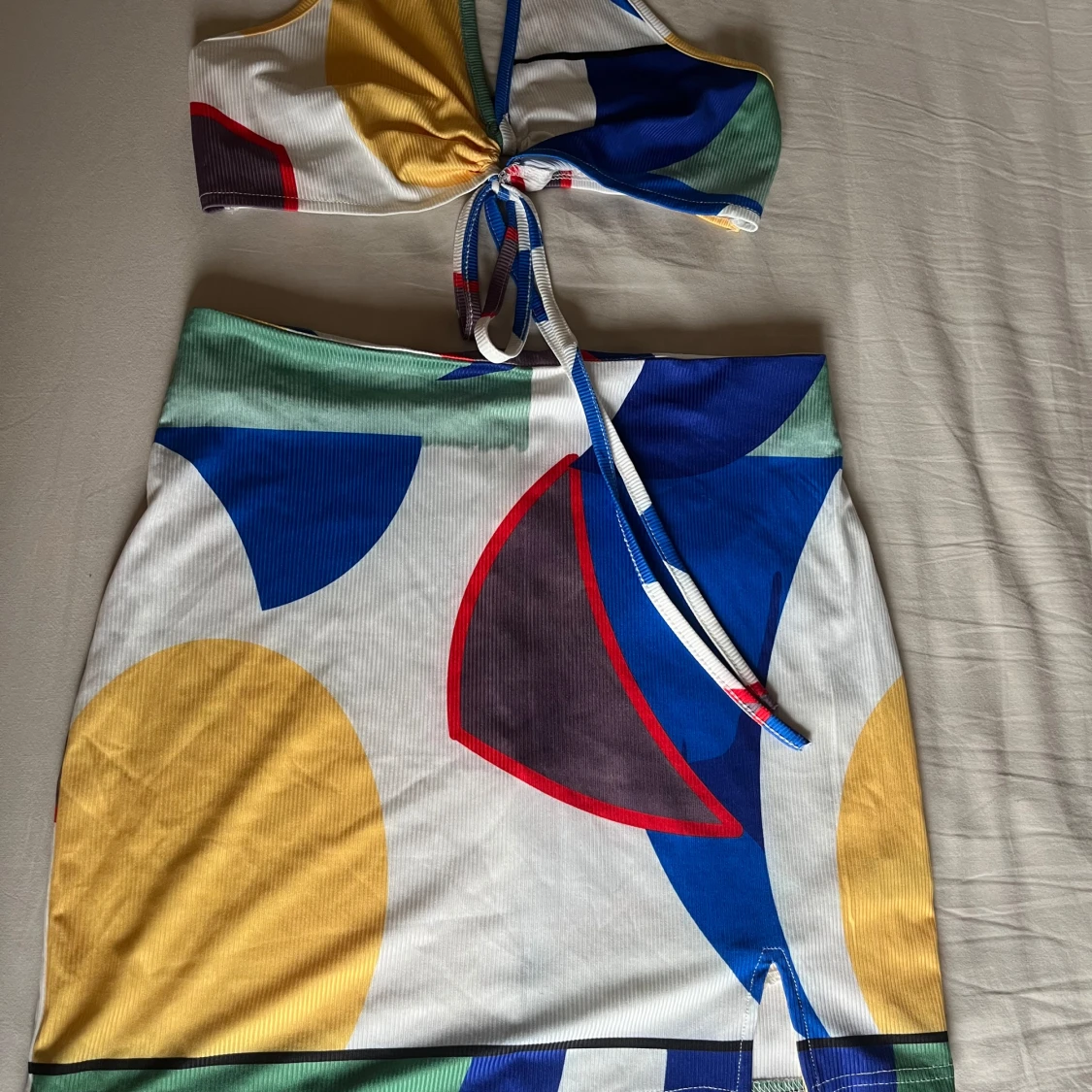 Jättefint set med kjol och topp som man knyter. Har endast provat det, har aldrig använt.
