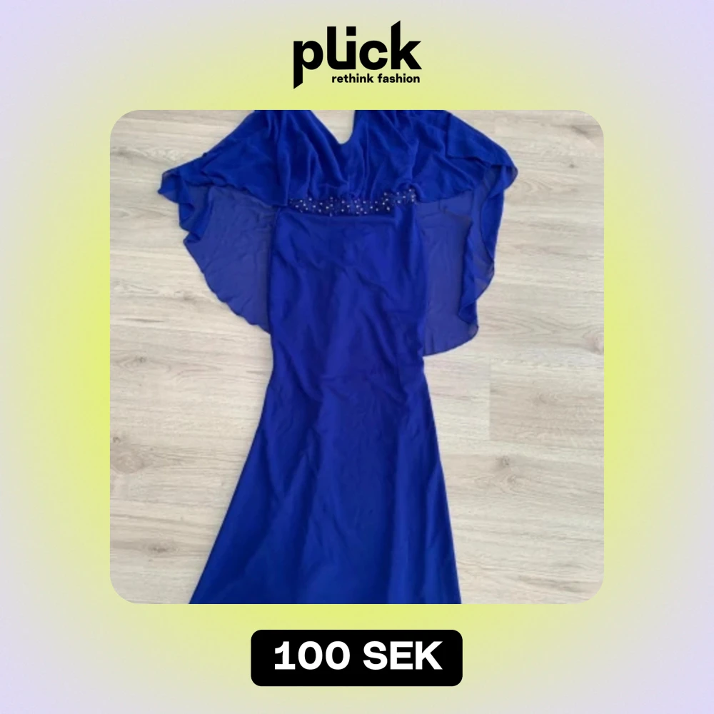 Blå festklänning, pärlor på, fiskformad Skriv för fler bilder