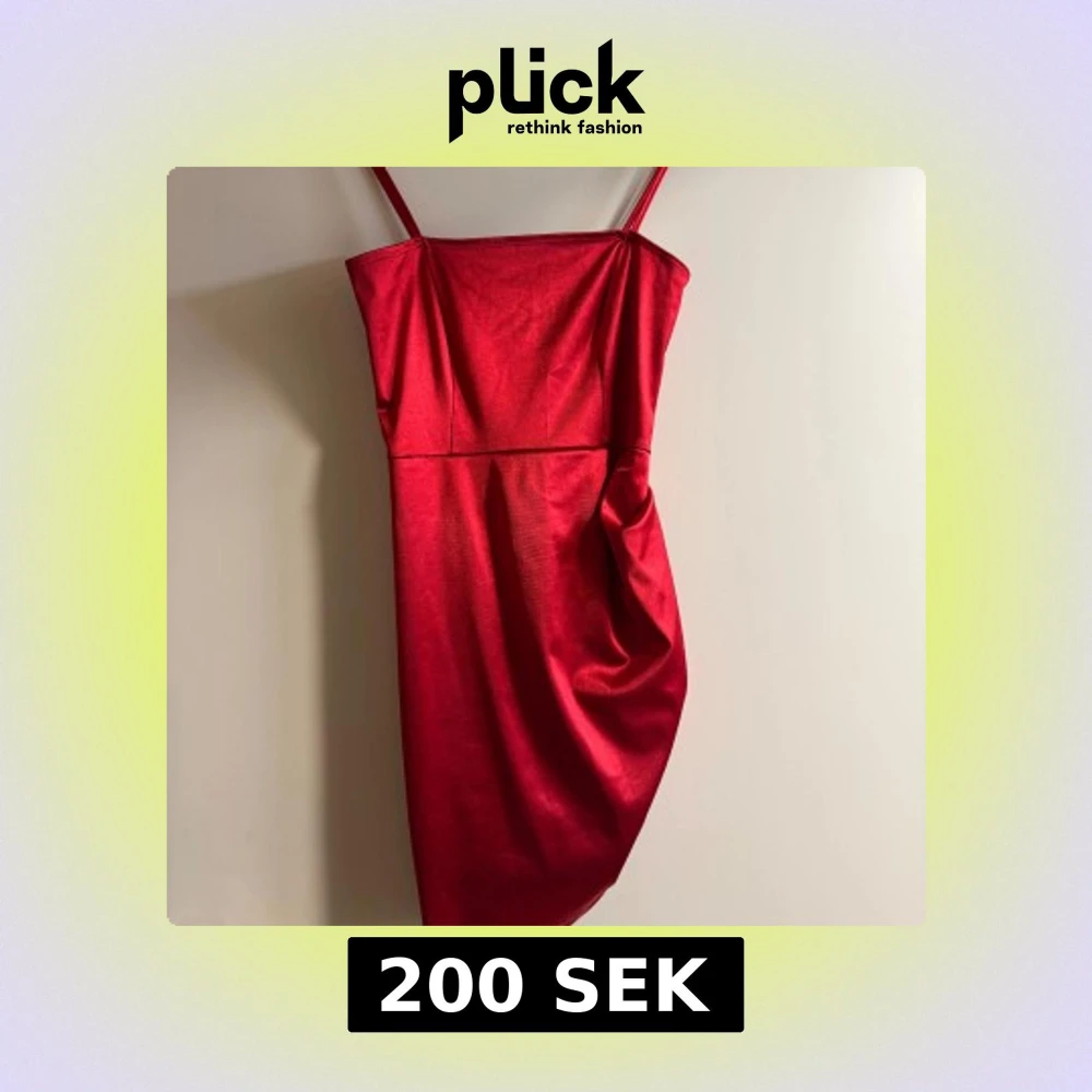 Snygg röd klänning med smala axelband och en figurnära passform. Klänningen har en draperad detalj på sidan som ger en elegant touch. Perfekt för en kväll ute eller en speciell tillställning.