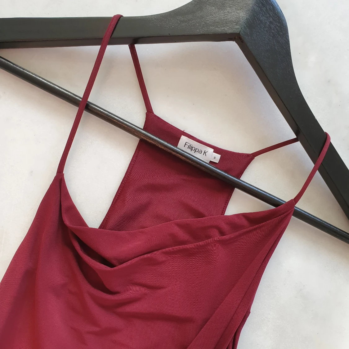 Vinröd klänning från Filippa K Klänningen är oanvänd Smala band upptill, sne ned till. Perfekt för en 36a-38a Kan mötas upp i Huddinge, Älvsjö, Årsta, Globen & Västberga