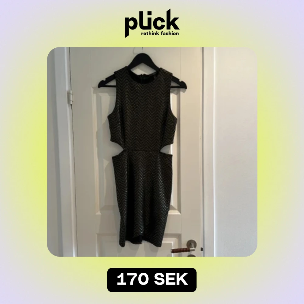 Supersnygg klänning med cutouts i midjan. Metallic färg som gör sig väldigt snygg på festen. Storlek S.