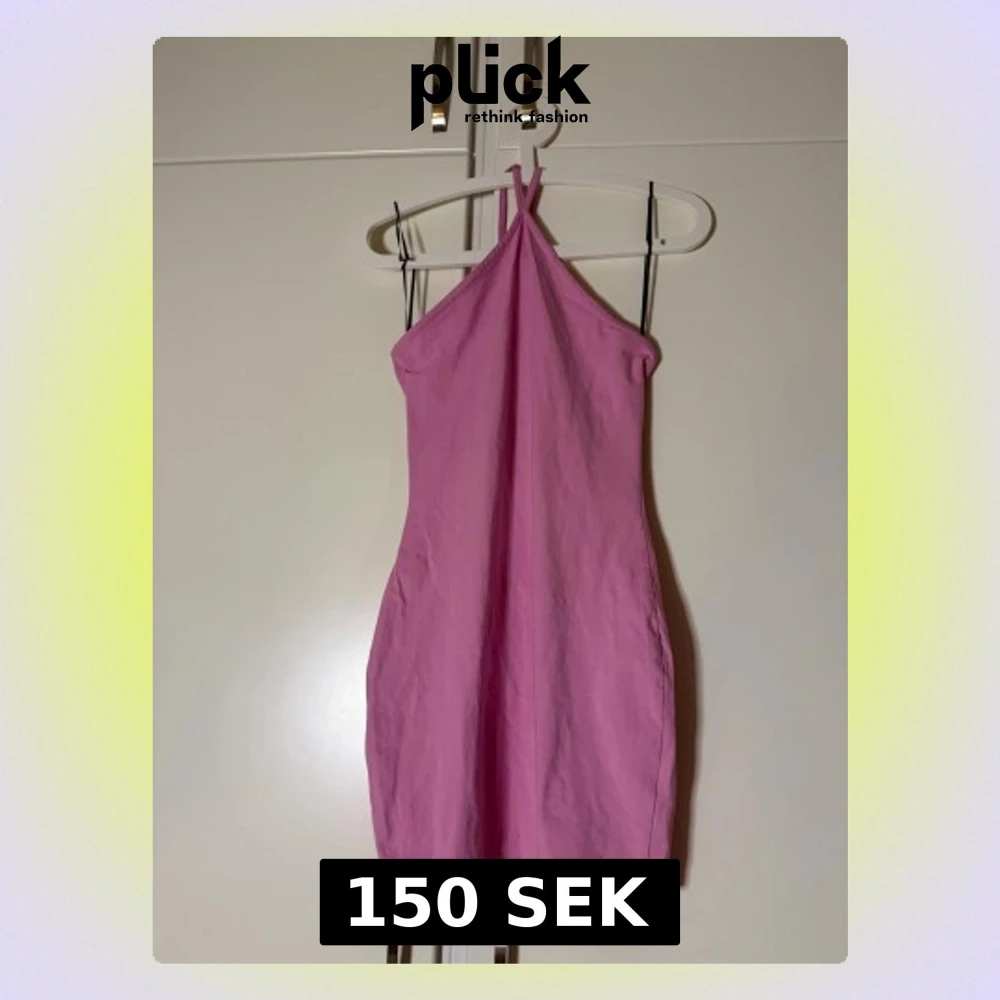 Säljer en söt rosa kortklänning med halterneck och smala band som korsas i nacken. Klänningen är figurnära och ger superfin form, perfekt för alla tillfällen. Enkel och stilren design utan mönster eller extra detaljer. Endast testad. Storlek S🩷