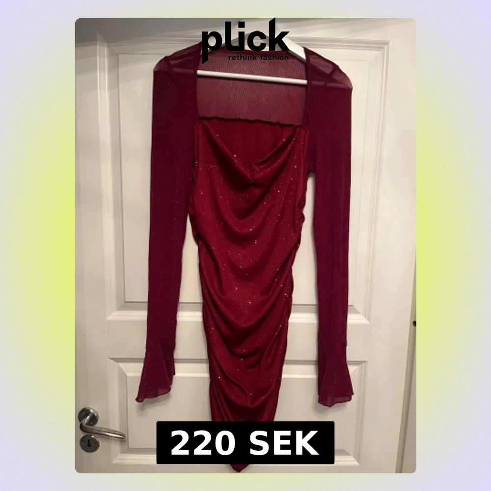 Väldigt fin vinröd glitterklänning med tight passform. Storlek L men passar bra på mindre och större storlekar eftersom den är så strechig. Lägger sig väldigt fin mot kroppen. Aldrig använd. Priset kan diskuteras.