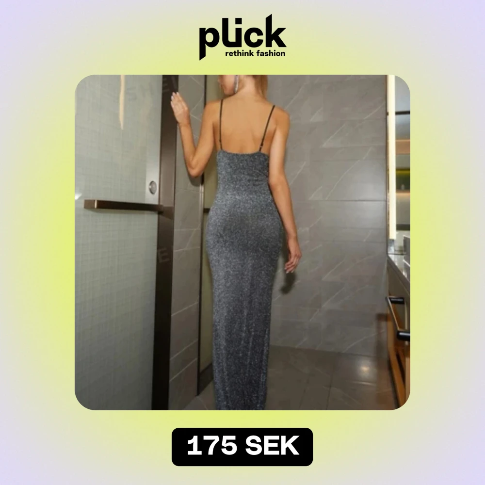 Glittrig långklänning, Storlek M, endast använd en gång och är i ny skick
