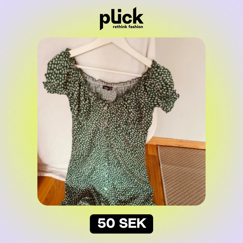 Grön Boohoo klänning med vita blommor, sparsamt använd.
