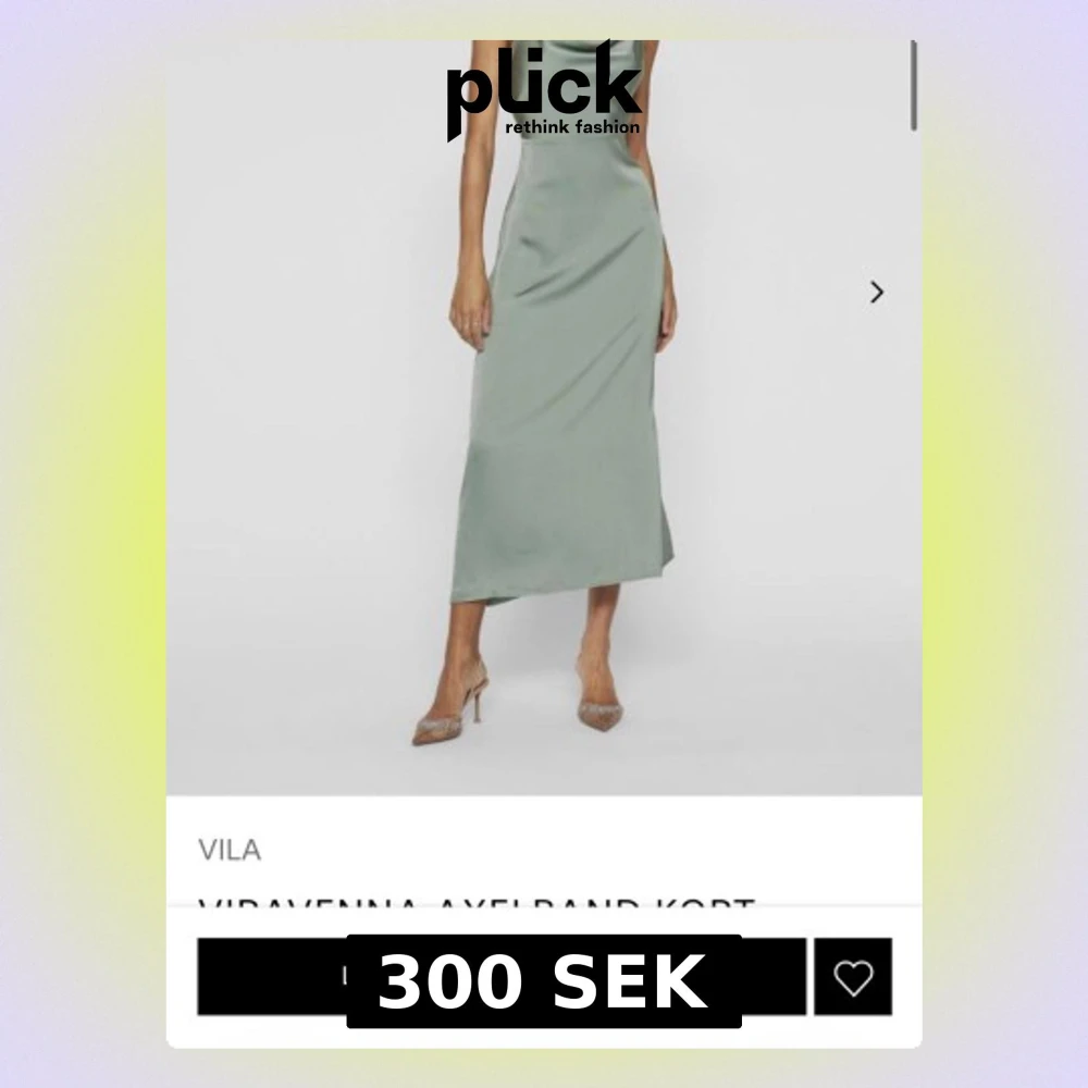 Helt ny klänning med prislapp. Endast testad. Snygg långklänning i ljusgrön ton från Vila med smala axelband och öppen rygg. Klänningen har en mjuk, glansig yta och faller fint längs kroppen. Perfekt för dig som gillar stilrena och eleganta plagg med enkel design.