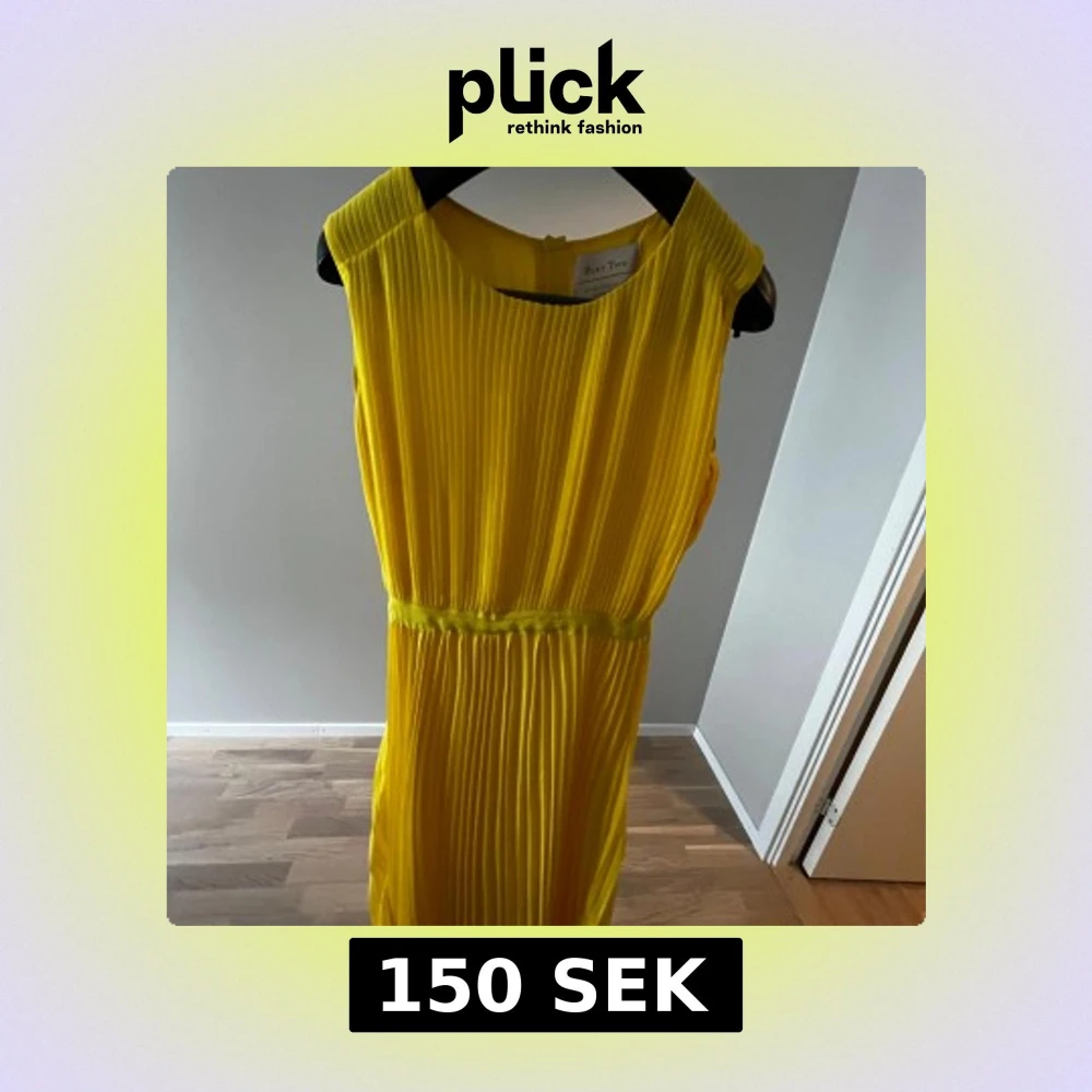 Säljer en solgul plisserad klänning . Klänningen är ärmlös med rund halsringning och har ett markerat midjeband. Perfekt för sommarens alla tillfällen!
