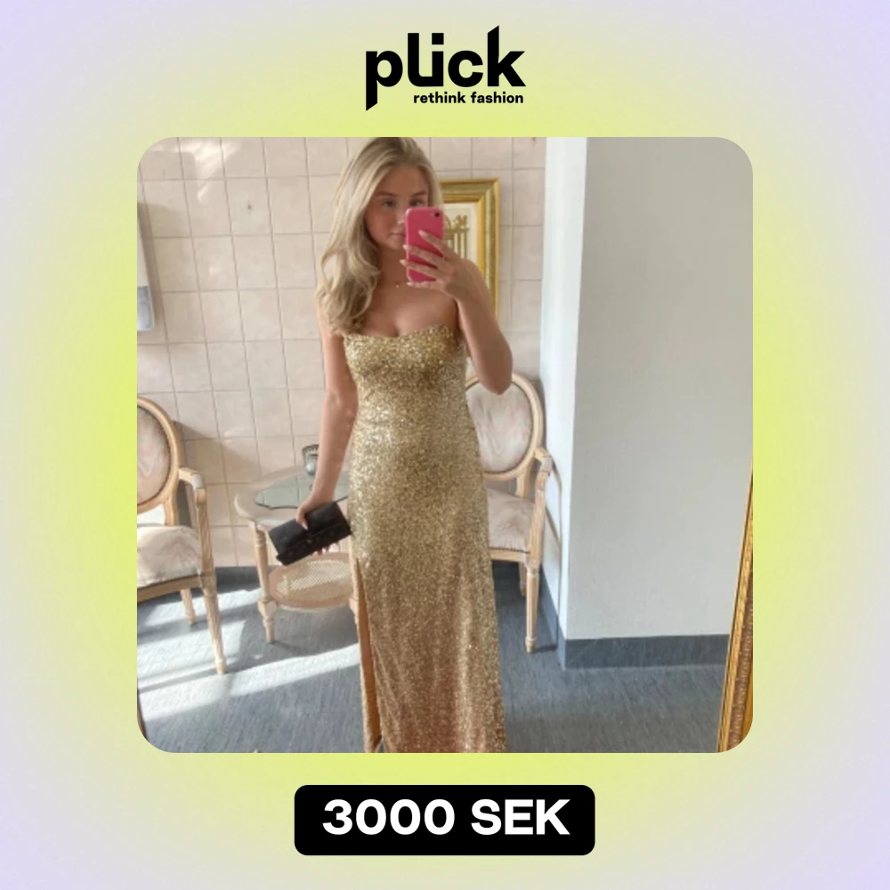 Otroligt vacker balklänning med guldiga paljetter över hela💕