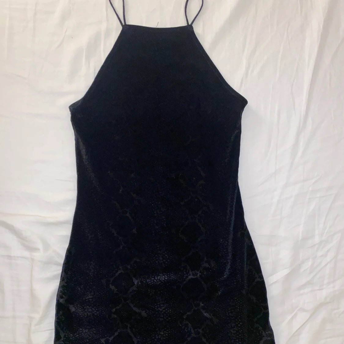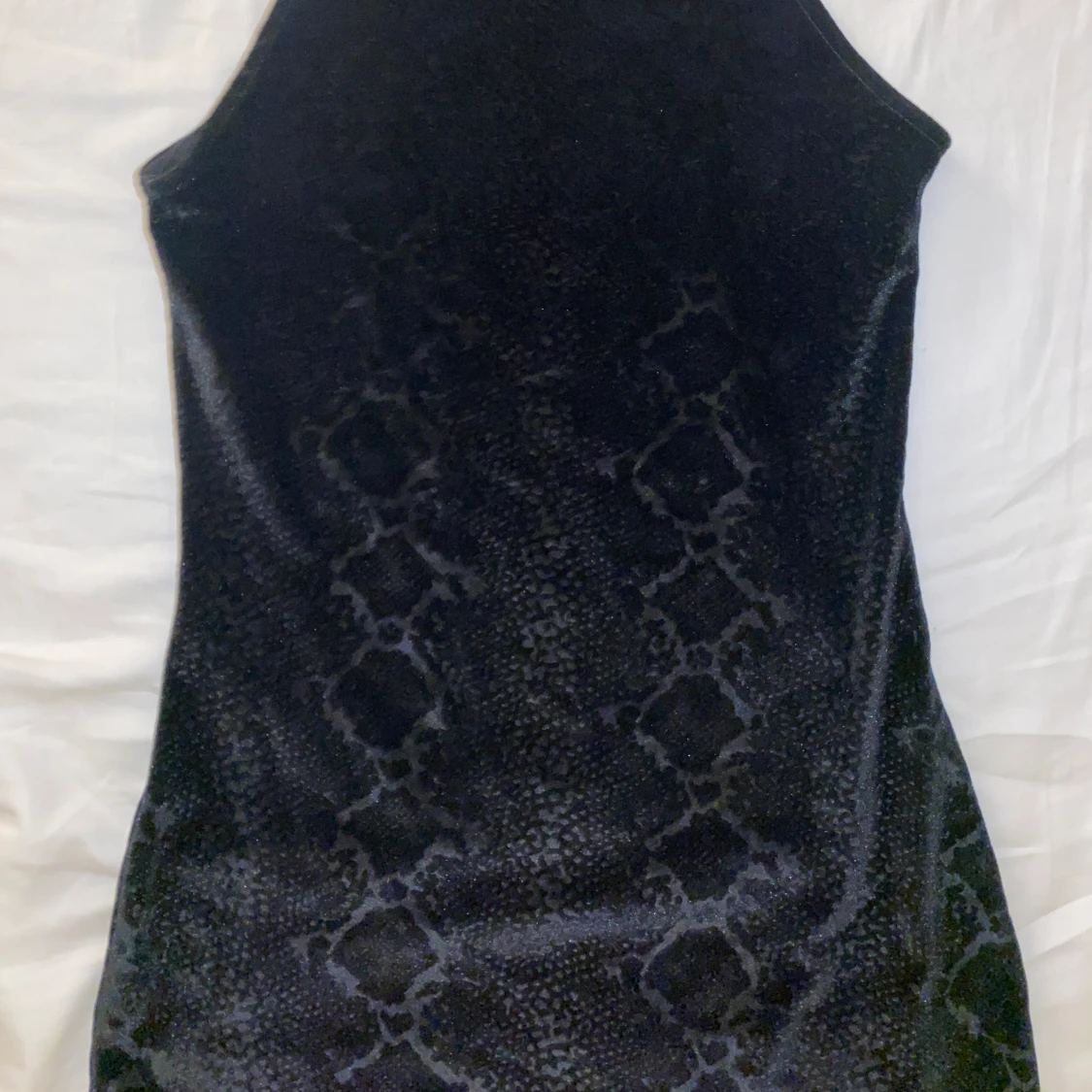 Ormmönstrad sammet klänning i storlek XS/S. Sitter som en smäck men har tyvärr blivit för liten på mig så säljer vidare den till någon annan snygging där ute🙏 Vid frågor eller intresse hör av er🙏☺️💗