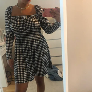En rutig klänning från hm. Lappen är kvar, så helt ny. Den är i storlek L, men skulle säga att den mer är storlek M.