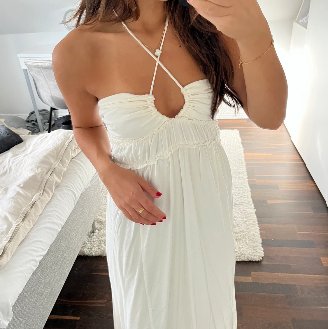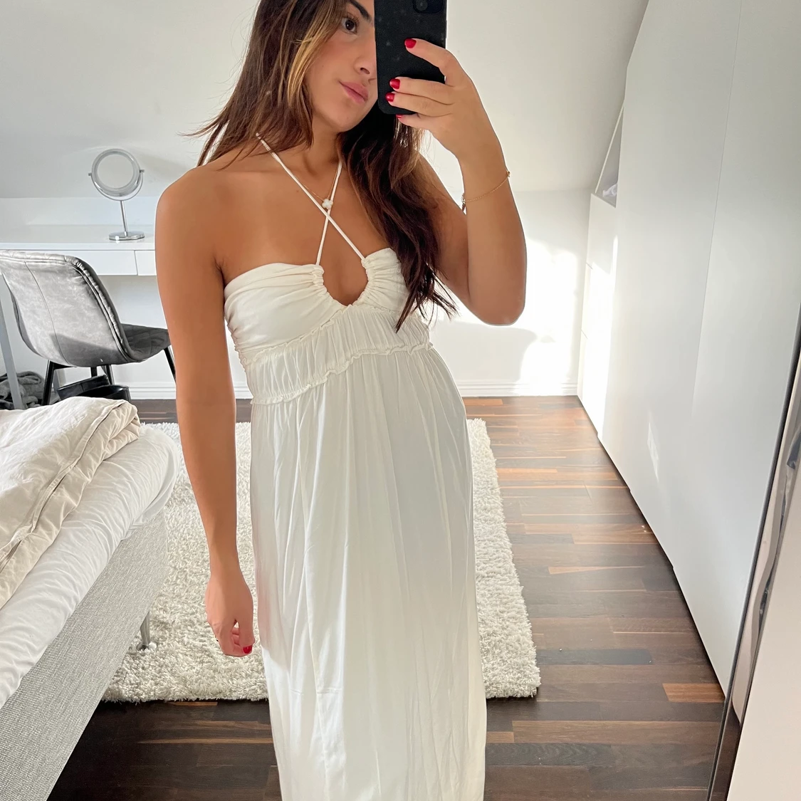 Säljer denna eftertraktade vita långklänningen från HM, aldrig använd. Prislapp är kvar 💗