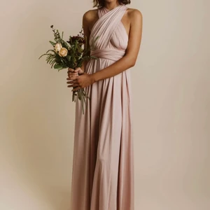 SÀljer min rosa klÀnning jag anvÀnde en gÄng pÄ ett bröllop som brudtÀrna sÄ den Àr i ny skick! Den gÄr att knyta pÄ massa olika sÀtt tex som pÄ den först bilden pÄ modellen. Den Àr frÄn HM och i stl xs