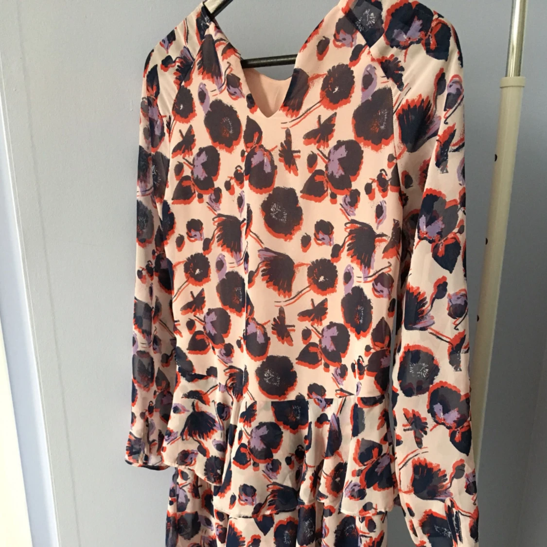 Pink dress with long sleeve, all over 3d print. Layers bottom make the dress different than other. Dress in good condition.