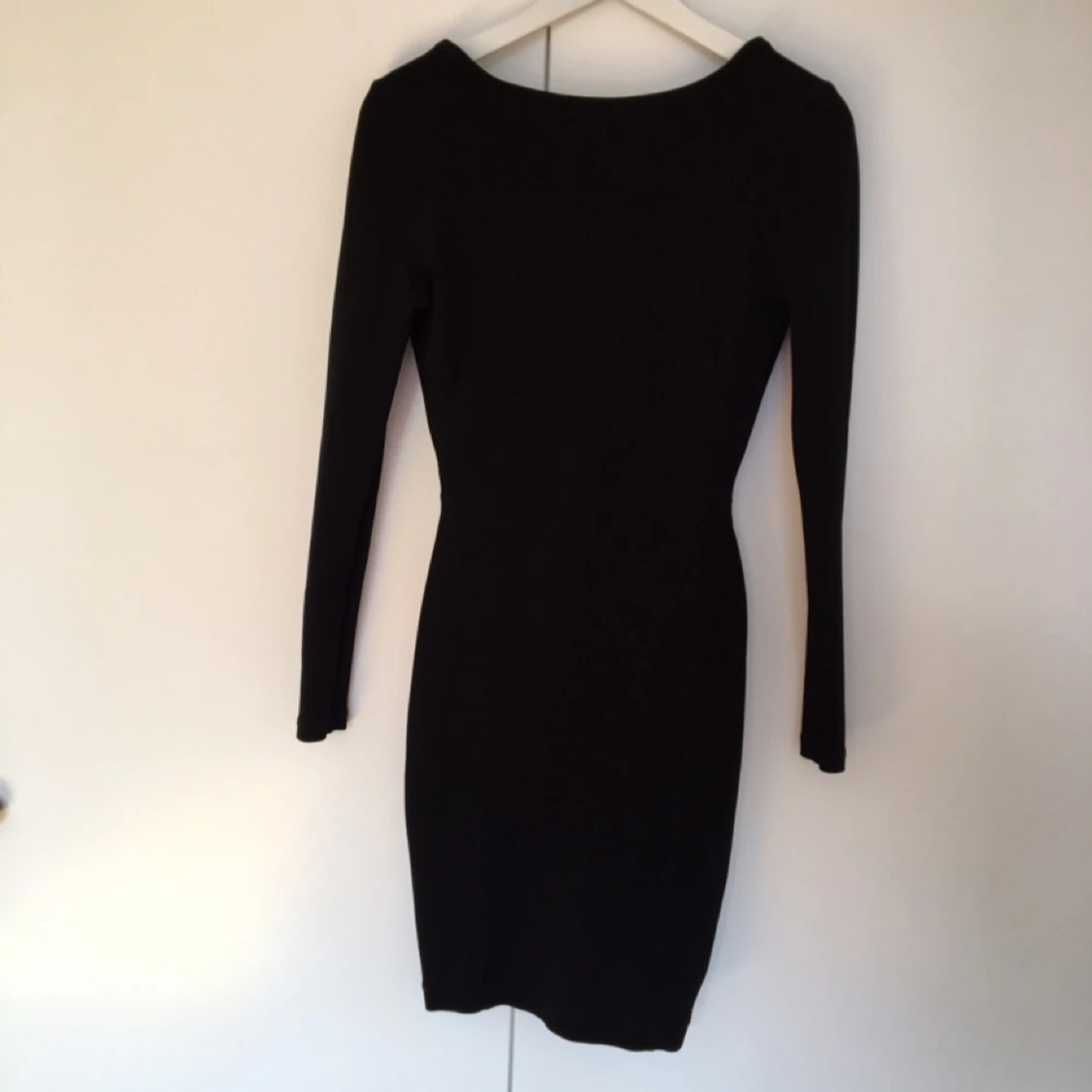 Svart fodralklänning med urringad rygg💫 från h&m i ett tjockare stretchmaterial. Möts gärna upp i Göteborg annars står köparen för frakten.