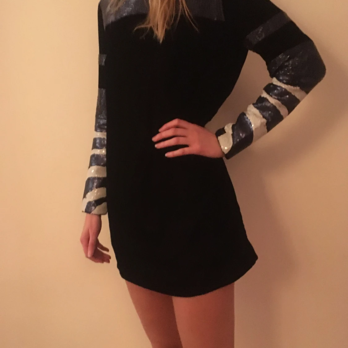 Klänning från HM studio. Gjord av svart sammet och paljetter. Helt oanvänd, prislapp finns kvar. Finns att hämta på Östermalm. Skickad om köpare betalar frakt