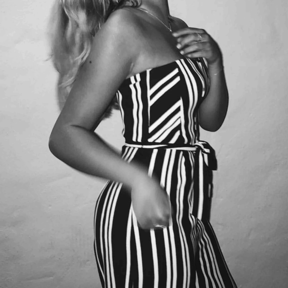 Jumpsuit från H&M! Randig, svart & vit. Supersnygg! Använd 2 gånger. Fint skick. Köparen står för frakt 💞🖤