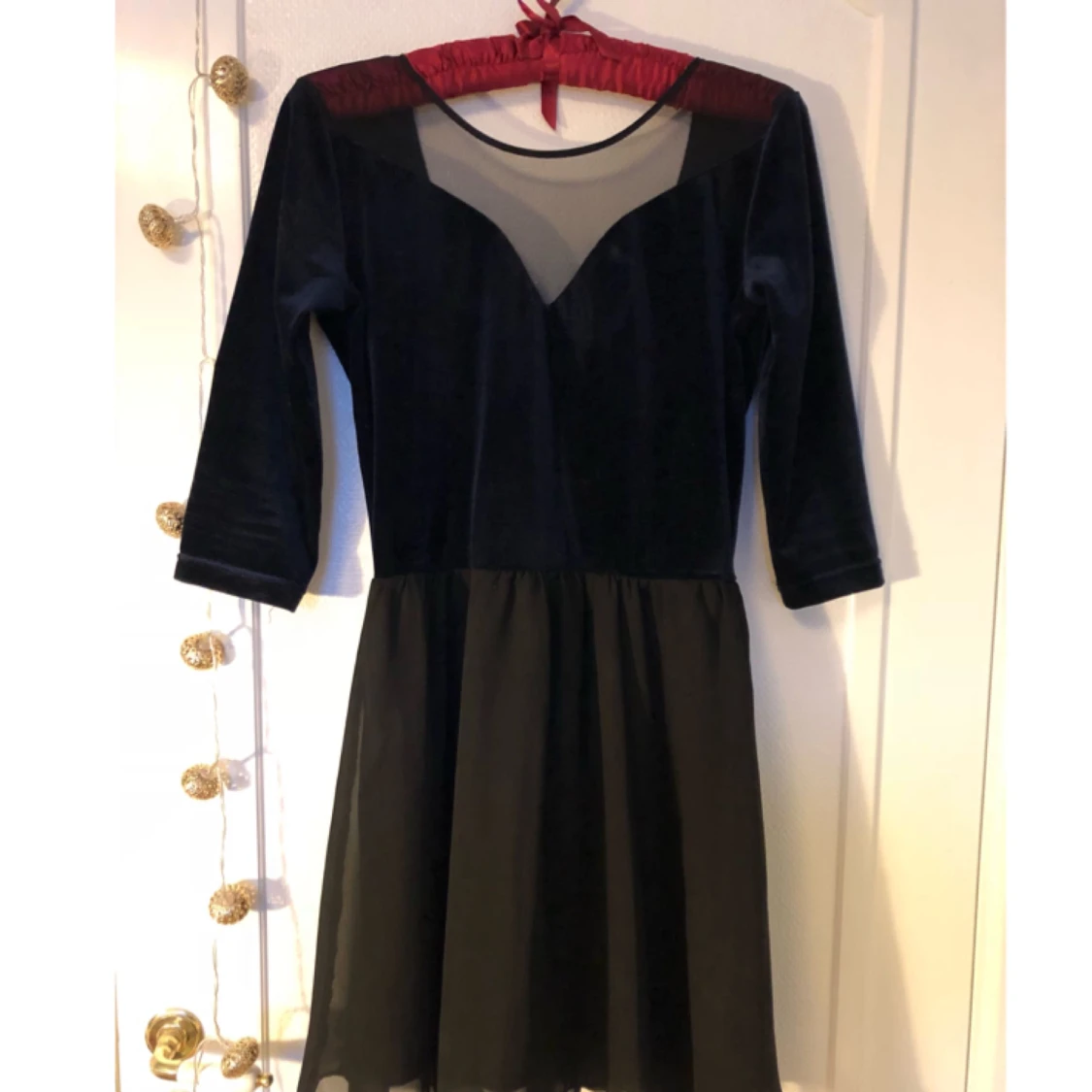 Superfin klänning i mörkblått sammetstyg upptill och svart tunnare tyg vid kjolen, samt meshparti uppe, något urringad rygg och 3/4-ärmar. ♥️ Betalning via Swish. Möts upp i Gävle/Uppsala, annars står köparen för frakt.
