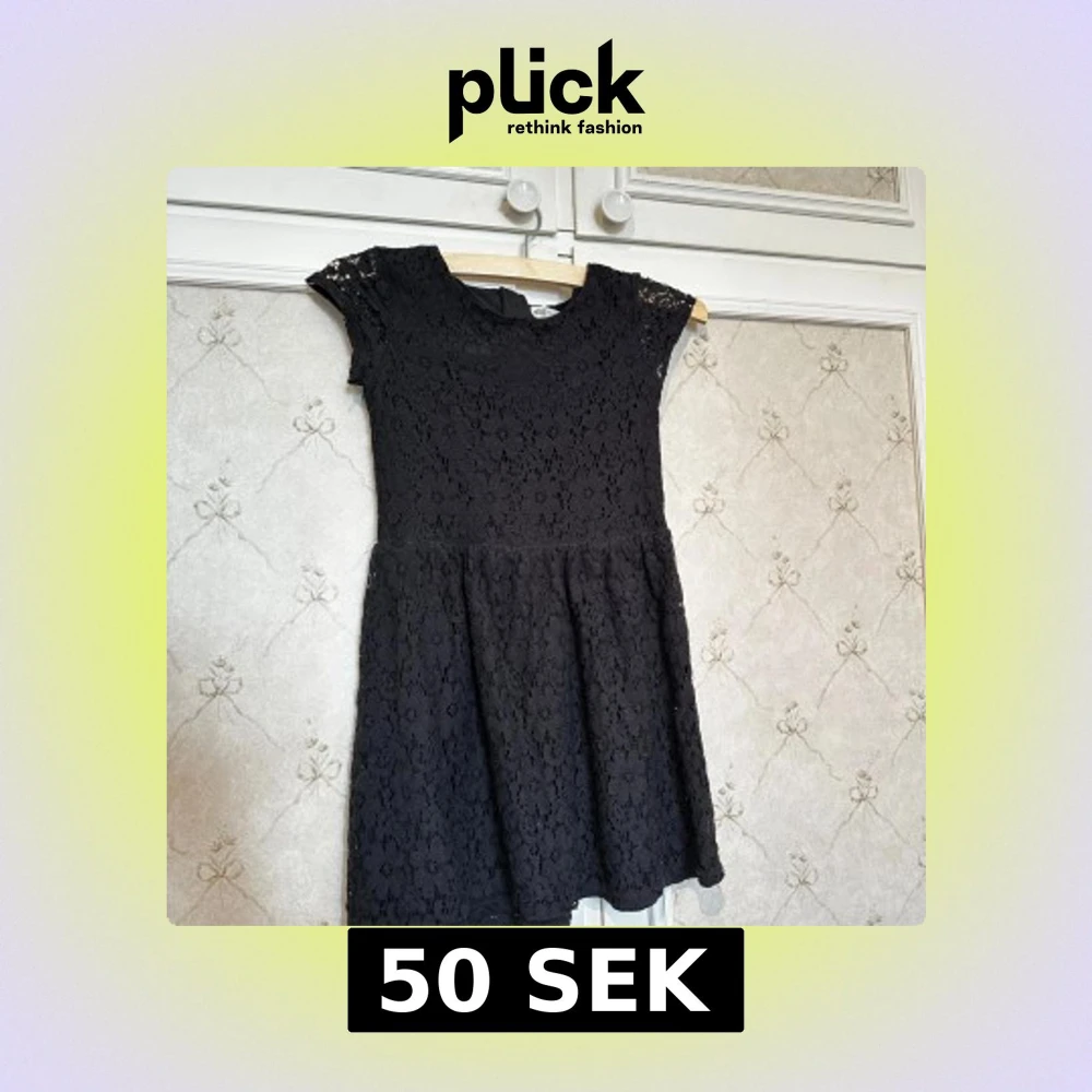 Säljer en elegant svart spetsklänning från H&M. Klänningen har korta ärmar och en dragkedja i ryggen för enkel påklädning. Perfekt för speciella tillfällen med sin fina spetsdesign. Använd ok många gånger. STORLEK=146cl