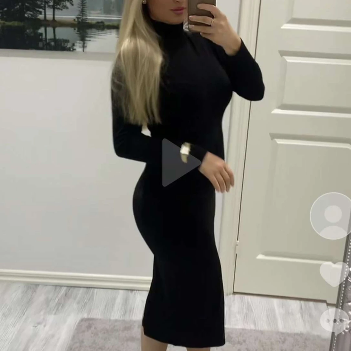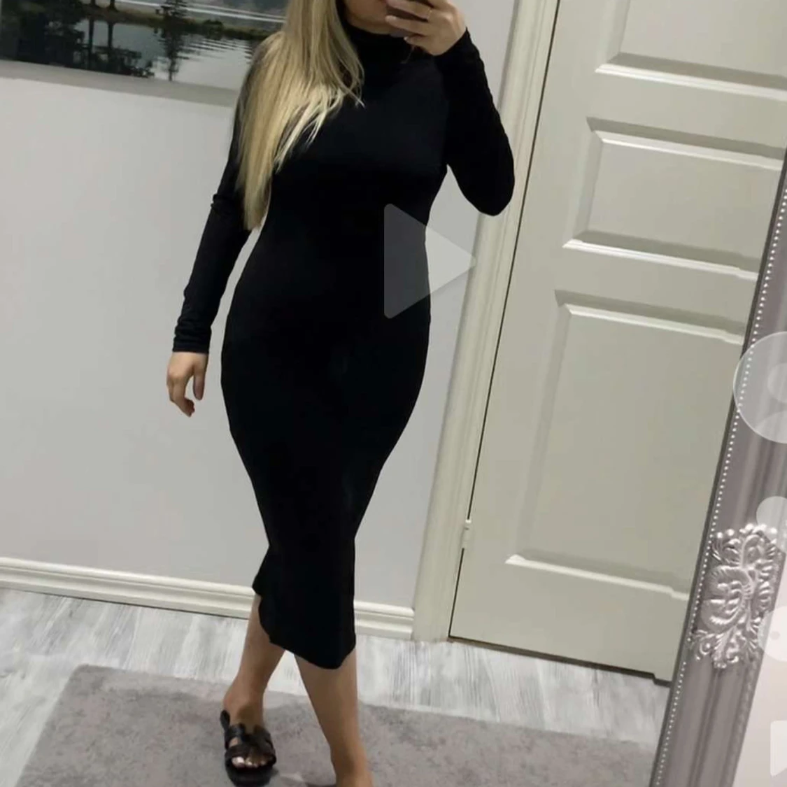 Elegant svart långklänning med polokrage och långärmad design. Klänningen har en tight passform och en subtil slits baktill för extra rörelsefrihet. Klänningen är från ny från H&M i strl S-M. säljer för 250kr🩷