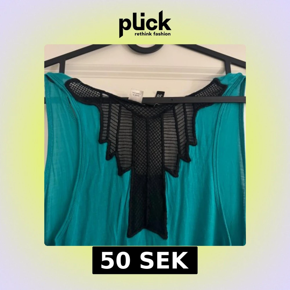 Snygg turkos långklänning med unik svart spetsdetalj vid halsringningen. Perfekt för en somrig look med sin ärmlösa design och luftiga passform.