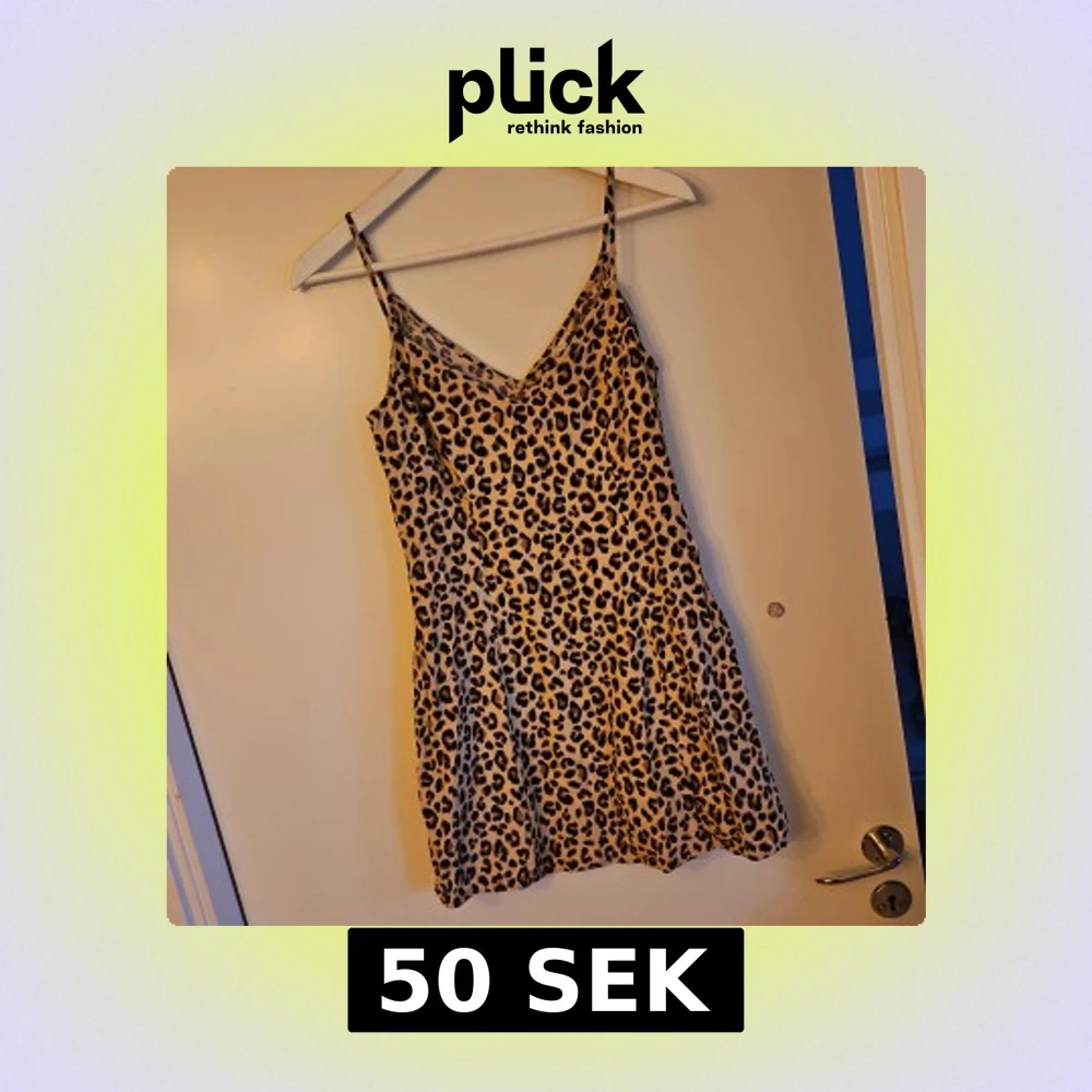 Trendig leopardmönstrad klänning med smala axelband och v-ringning. Perfekt för en djärv look. Klänningen är kort och har en figurnära passform.
