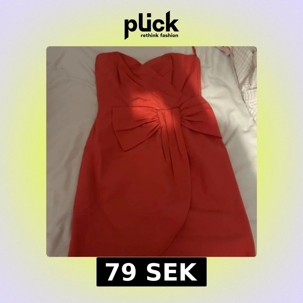 Snygg rosa axelbandslös kortklänning från H&M i storlek 38. Klänningen har en stor rosett framtill och omlott-detalj vid bysten. Perfekt för dig som vill sticka ut med en färgstark look. Materialet är mjukt och följsamt. Klänningen ser röd ut på bilden men den är rosa