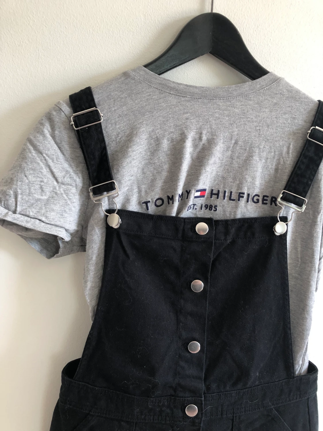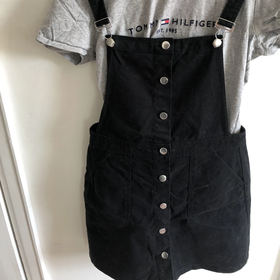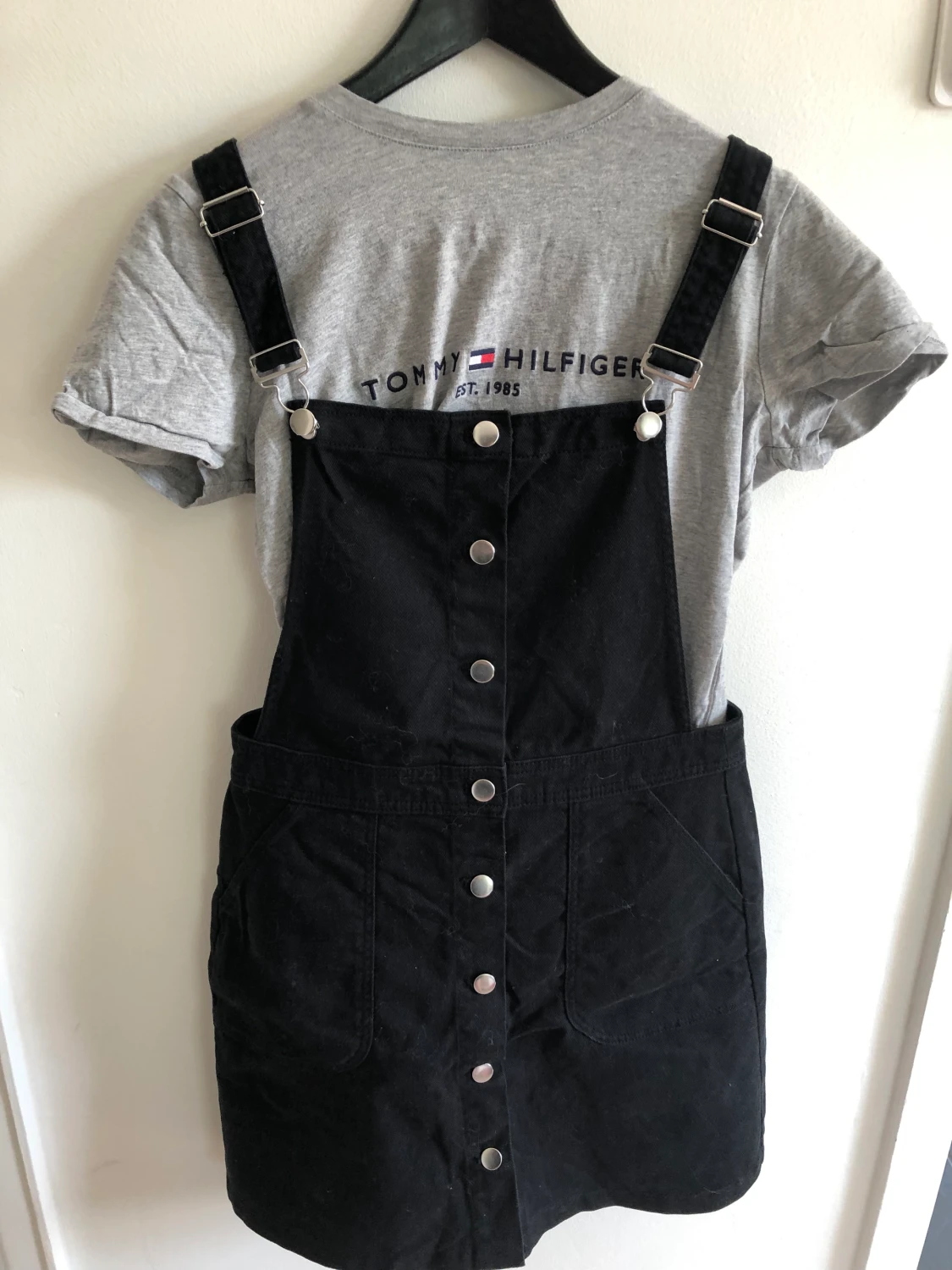 Svart klänning med hängslen i denim. Superskön med fickor. T-shirt ingår ej!