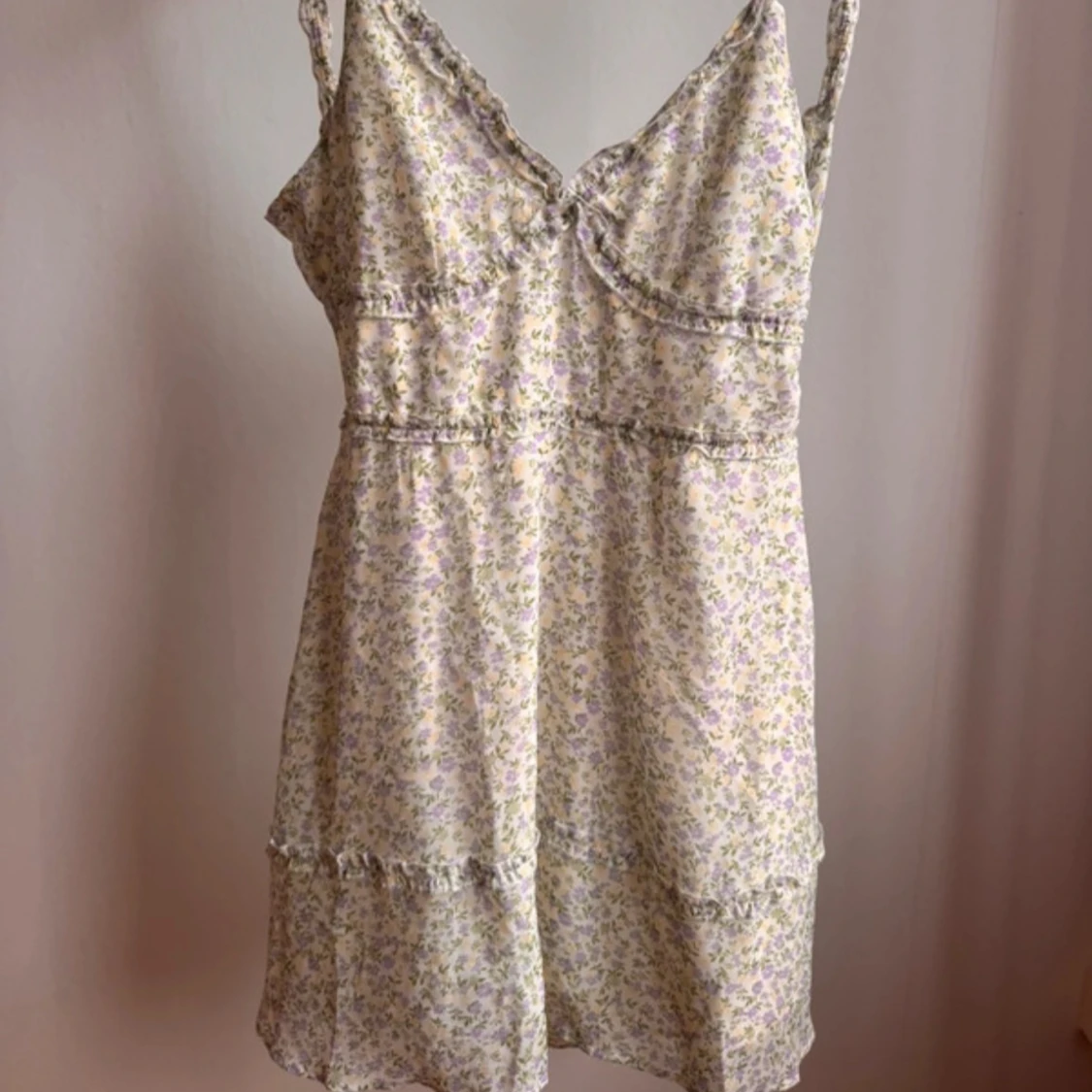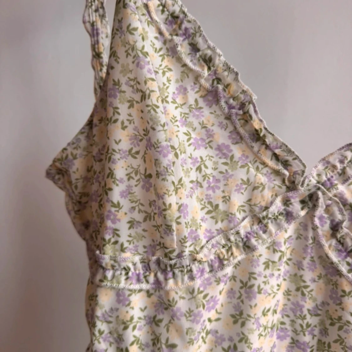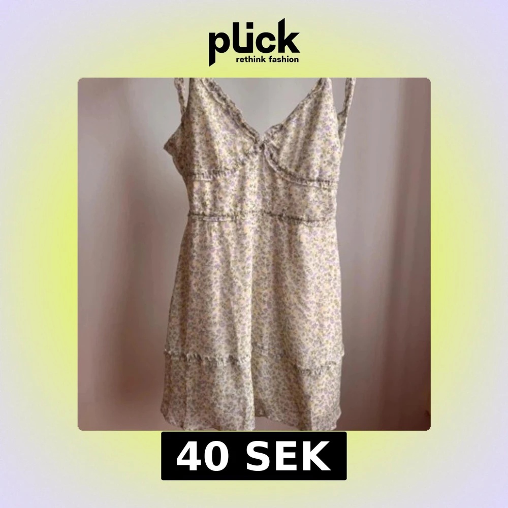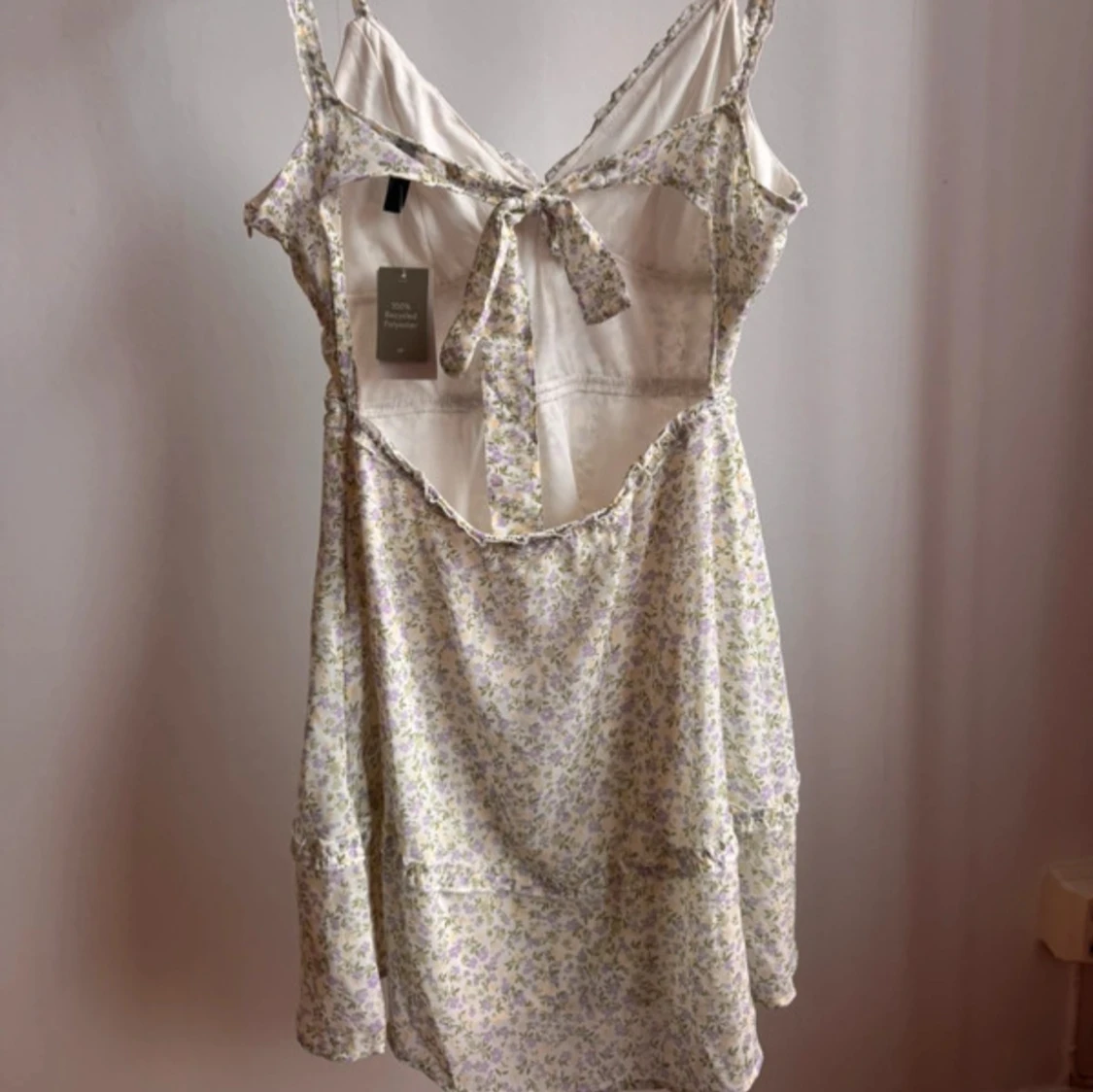 Söt blommig klänning från HM Divided. Öppen rygg med knytning bak. Dold dragkedja på vänstersida. Storlek 42, dock liten i storleken och passar mig som är en 38a. Endast testat, prislappen kvar.