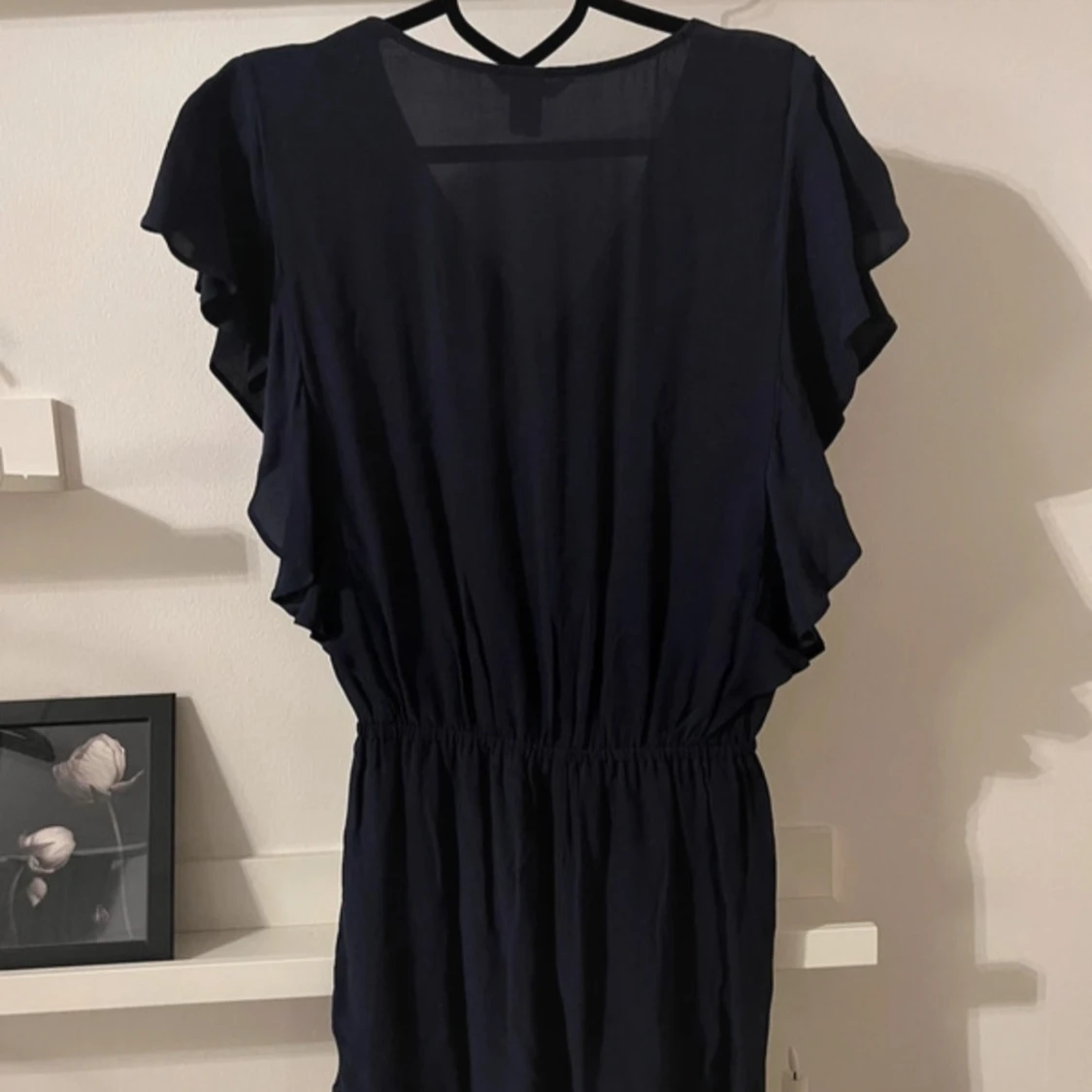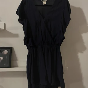 Säljer en stilren mörkblå jumpsuit/playsuit från H&M med v-ringad hals och korta ärmar & ben.
