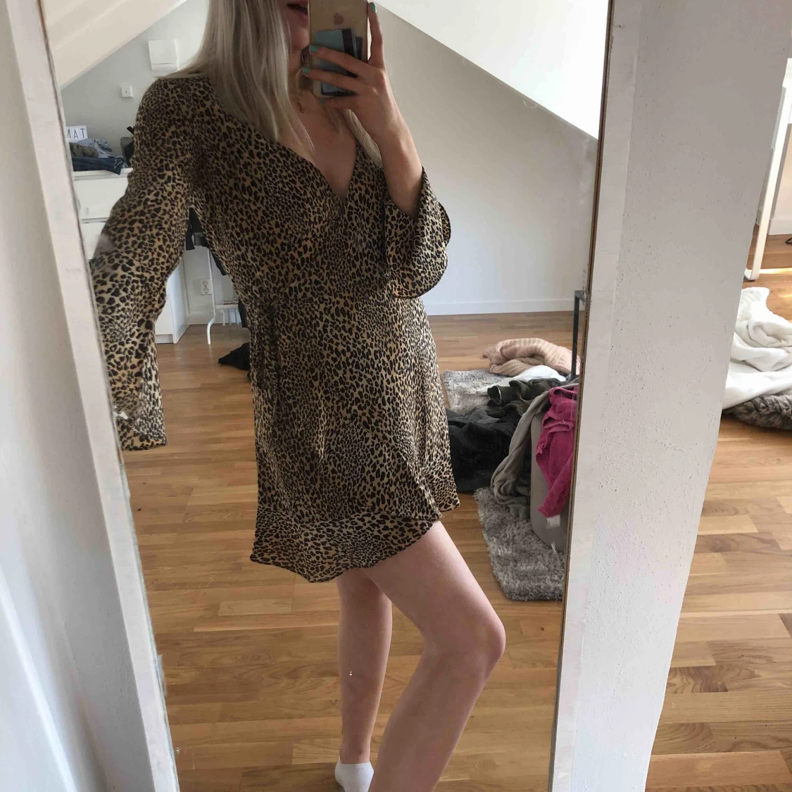 Suuperfin leopard klänning från hm! Storlek 38 men skulle säga att den passar en 36 bättre. Frakt tillkommer eller så kan jag mötas upp i stockholm city