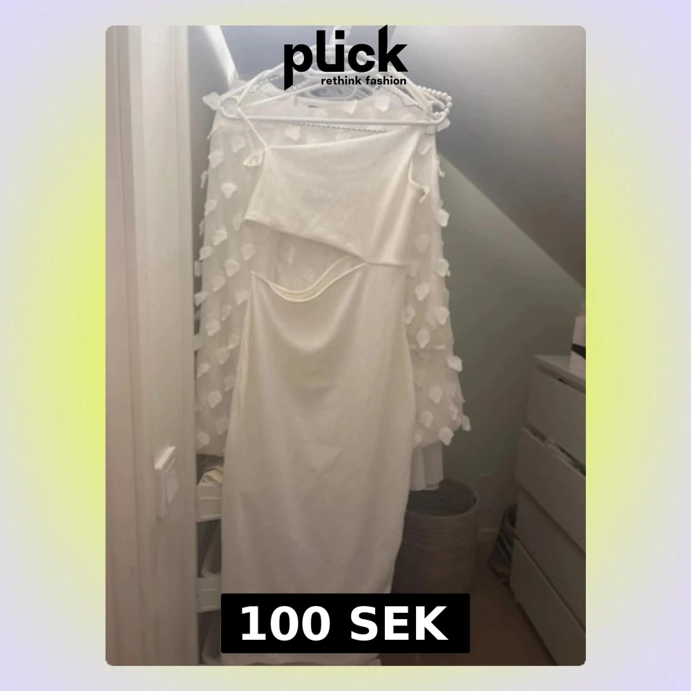 Säljer en vit långklänning från H&M i ribbad polyester. Klänningen har en öppning på sidan. Klänningen har en axelbandslös stil och ett coolt snitt vid midjan som ger en modern vibe. Perfekt för dig som gillar trendiga och stilrena plagg.