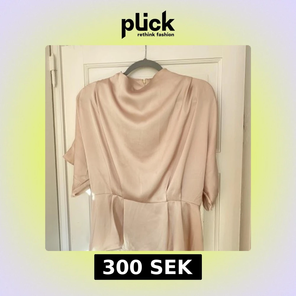 Säljer en elegant beige blus från H&M i ett mjukt och glansigt material. Blusen har korta ärmar och en dragkedja i ryggen för enkel påklädning. Perfekt för en stilren look.