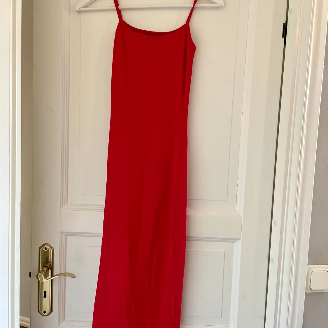 Röd långklänning med smala axelband