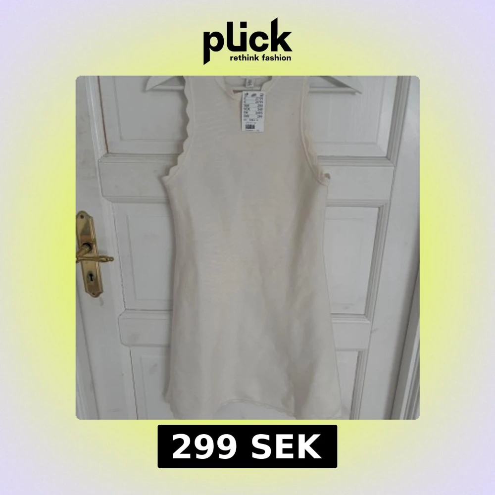 Supersöt vit kortklänning från H&M med ribbad struktur och vågiga kanter längs ärmhålen och där nere. Helt oanvänd med prislapp.