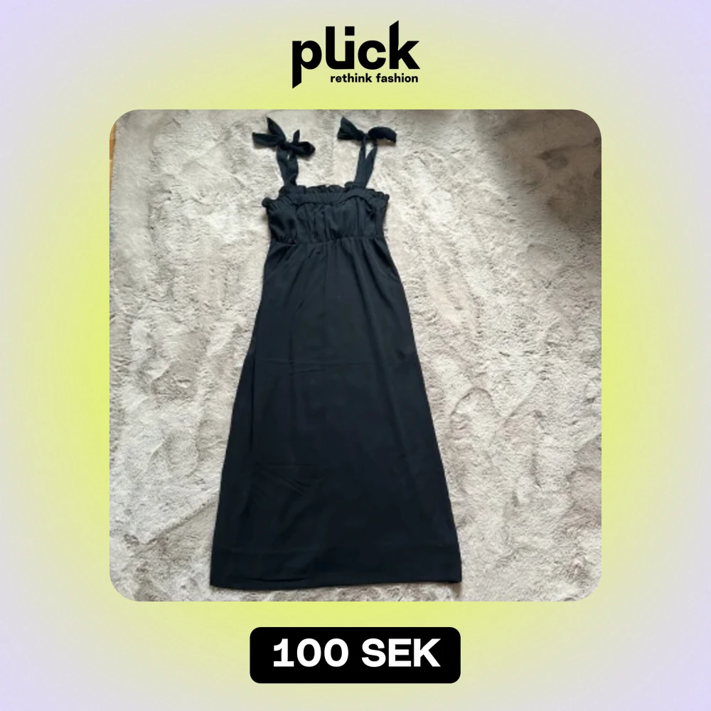 Svart klänning från HM i strl S, skick 6/10, knytband över axlarna