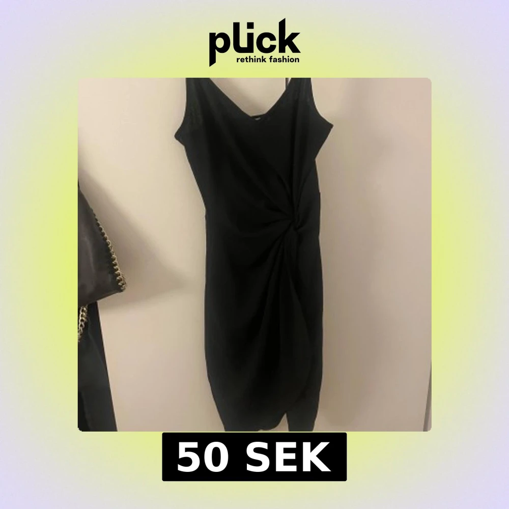 Elegant svart klänning med en stilren knutdetalj framtill. Klänningen är ärmlös och har en v-ringad design som ger en sofistikerad look.