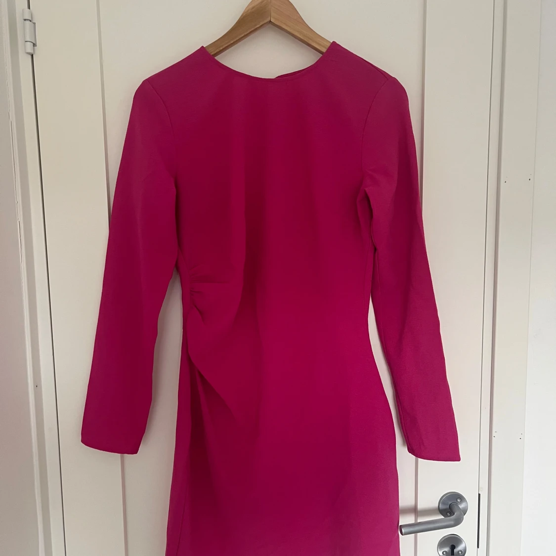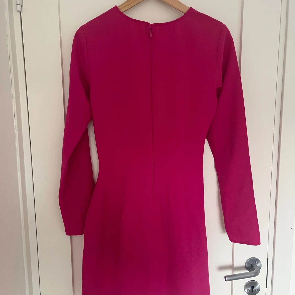 Rosa kort klänning med lång ärm och figurnära passform. Klänningen har dragkedja i ryggen.