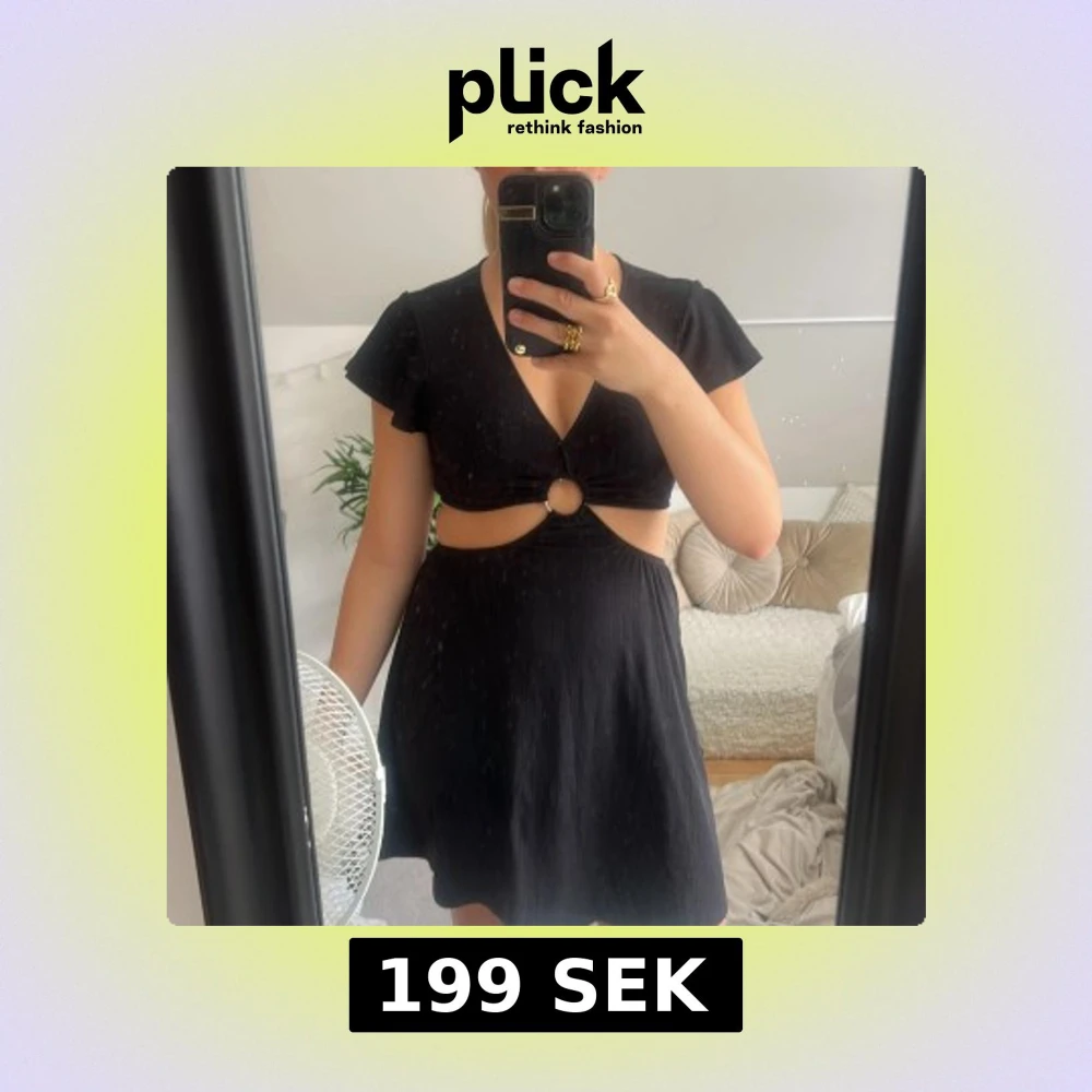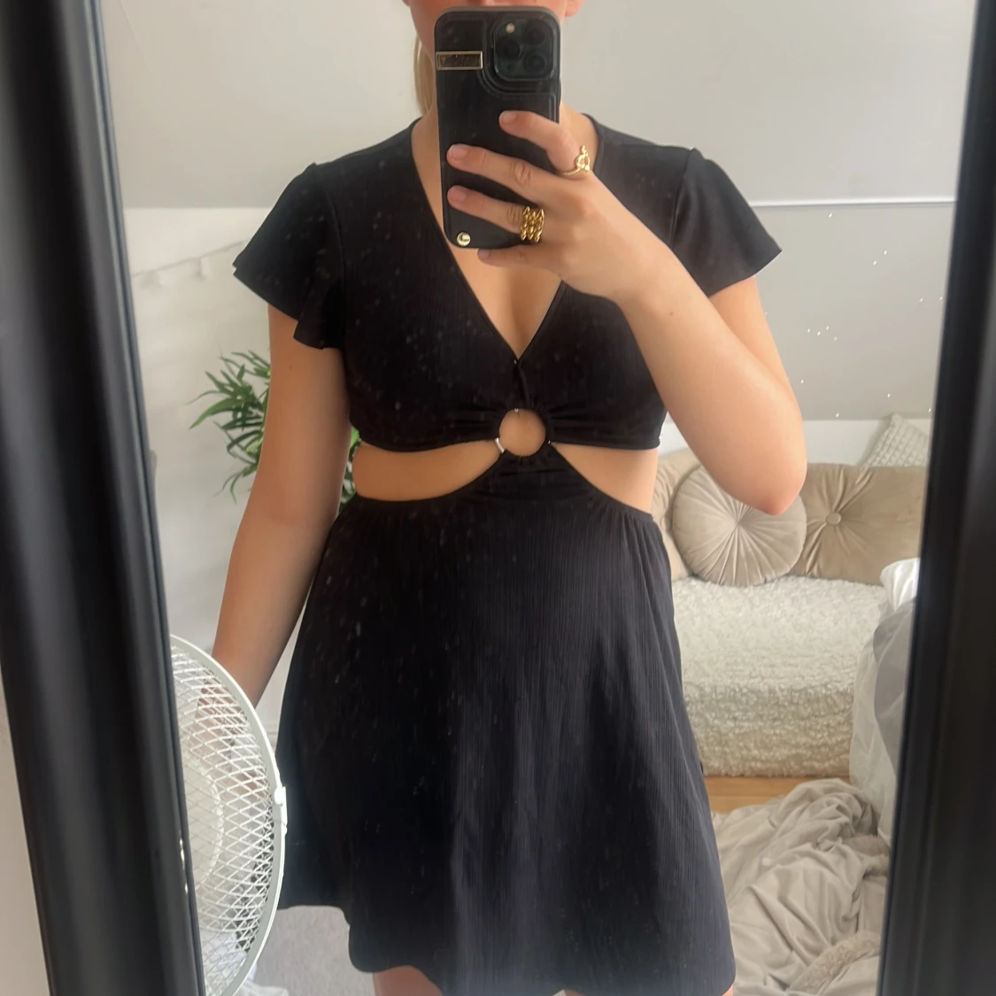 Använd 1 gång! Svart kortklänning med cut out och ring