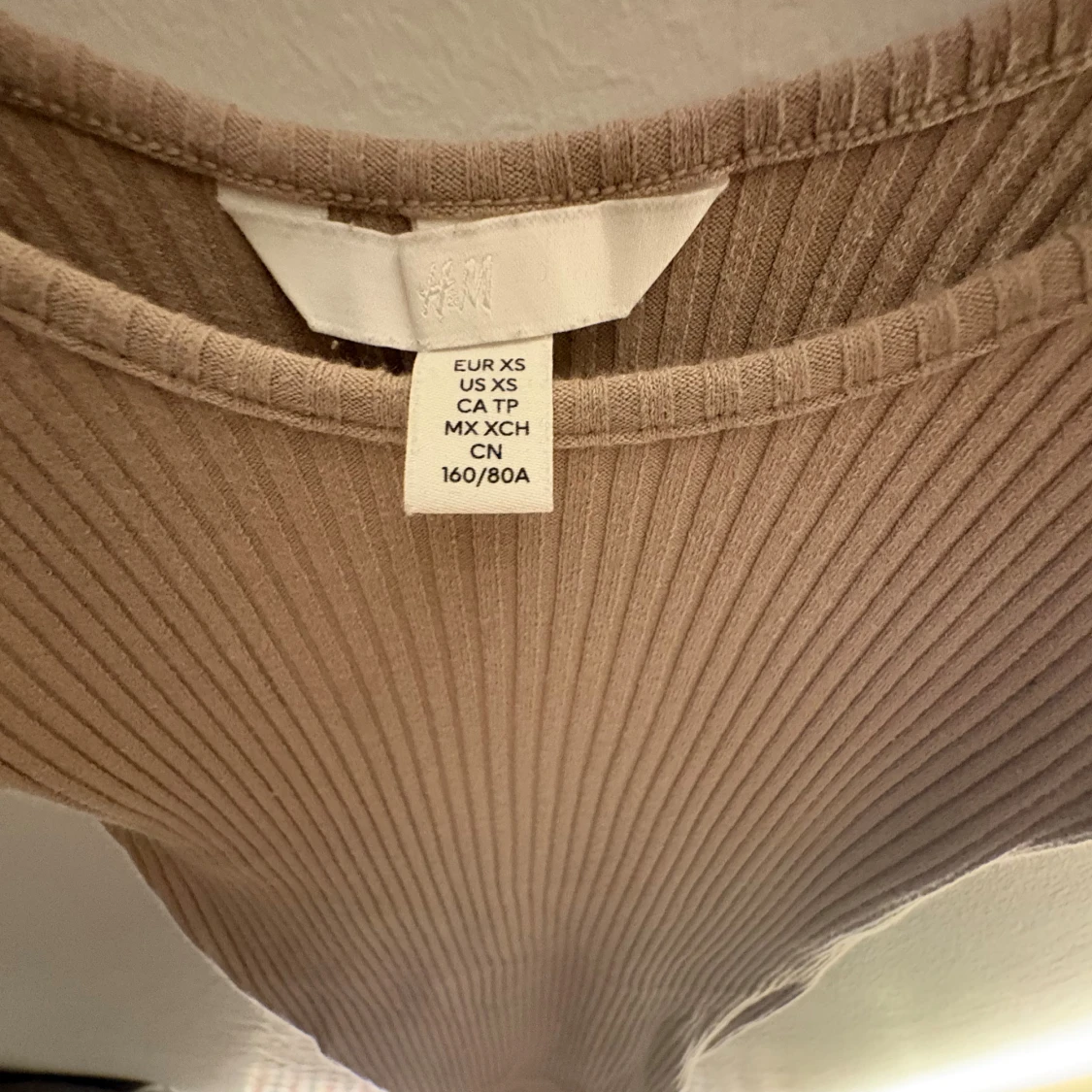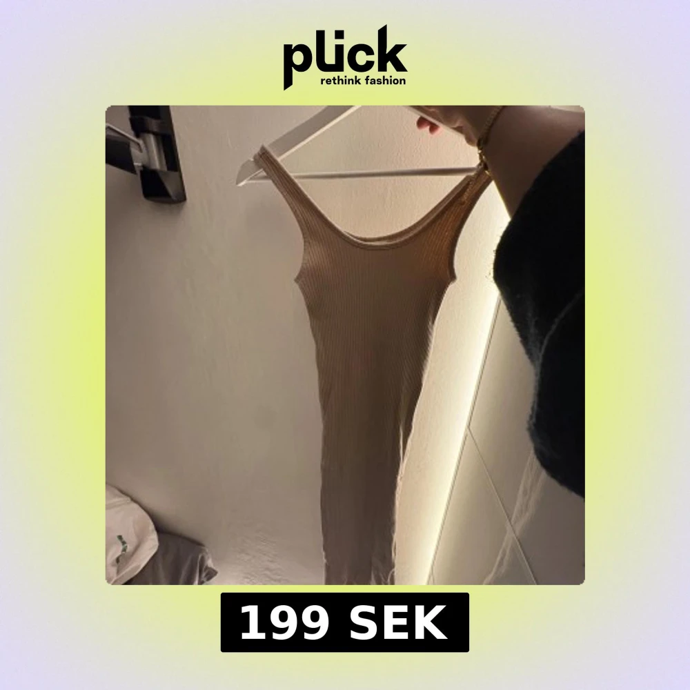 Säljer en beige ribbad långklänning från H&M i storlek XS. Klänningen är ärmlös med rund halsringning och har en tight passform som framhäver figuren. Perfekt för dig som gillar en enkel men snygg look.