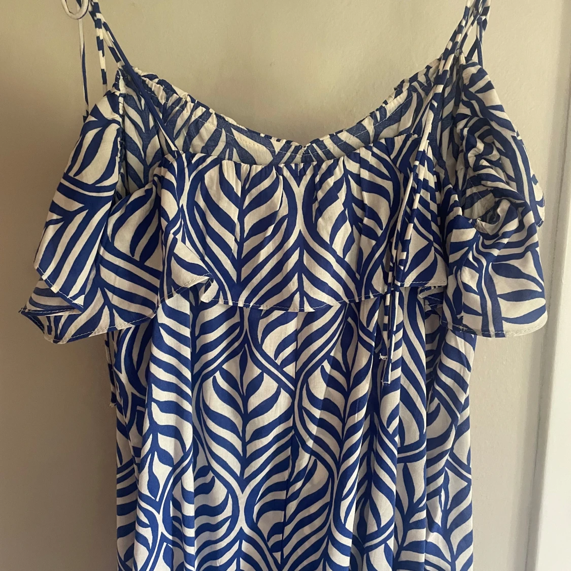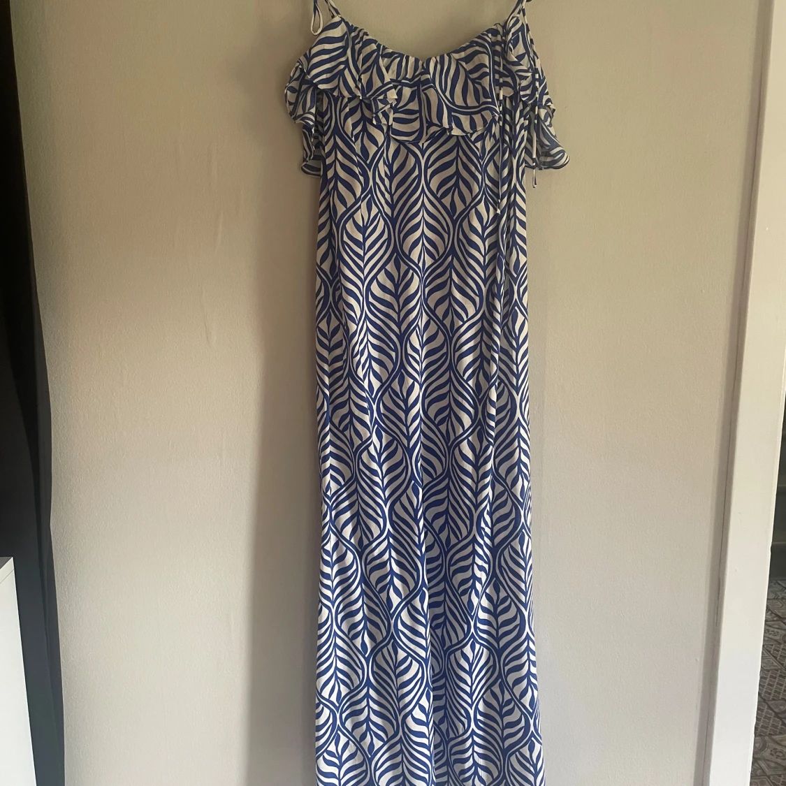 Blåvit långklänning med volang från H&M