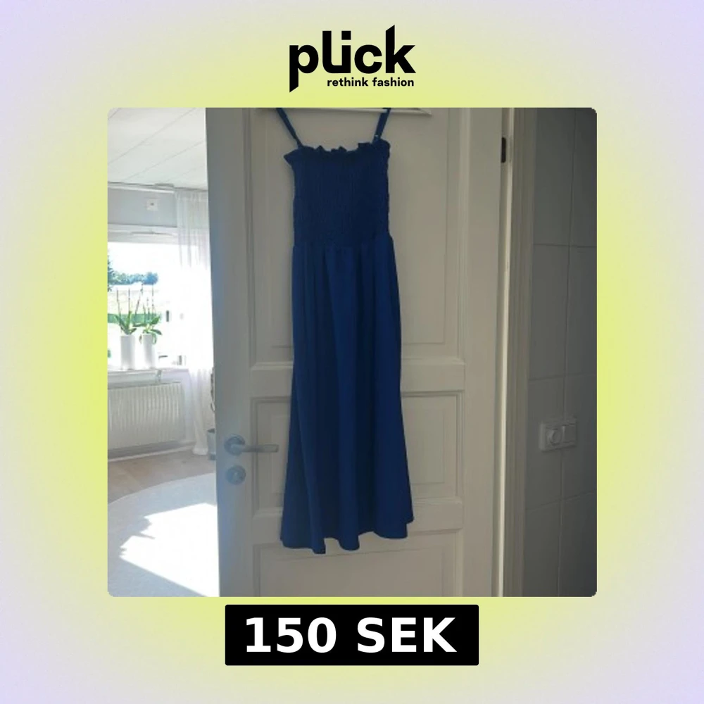 Säljer en blå långklänning från H&M i storlek XS. Klänningen har smockad överdel med volangkant upptill och justerbara smala axelband. Kjolen är luftig och faller snyggt. Perfekt för dig som gillar enkel men stilren design.